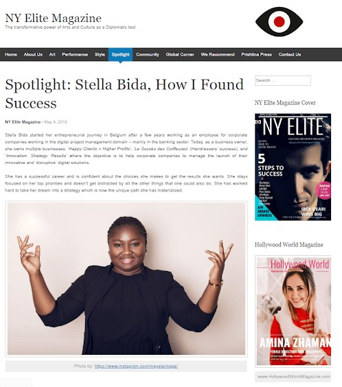 Stella has been featured in numerous media outlets internationally from France, Belgium, the United States, to South Africa or Congo.